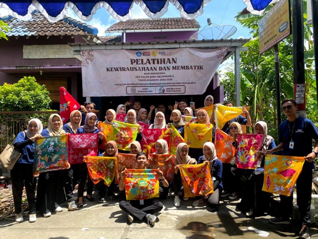 Sebanyak 113 mahasiswa Program Pendidikan Profesi Guru (PPG) Universitas PGRI Yogyakarta (UPY) mengikuti pelatihan kewirausahaan dan membatik yang berlangsung di Batik Musa Sewon, Bantul. Pelatihan ini merupakan bagian dari upaya UPY untuk membekali mahasiswa dengan keterampilan kewirausahaan, yang juga menjadi salah satu fokus utama dalam program PPG.