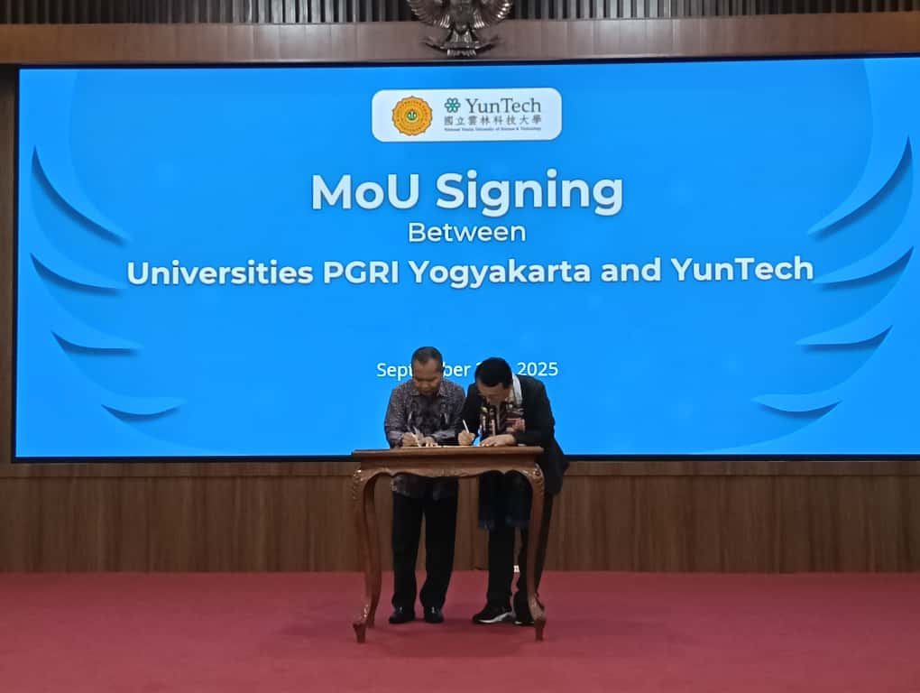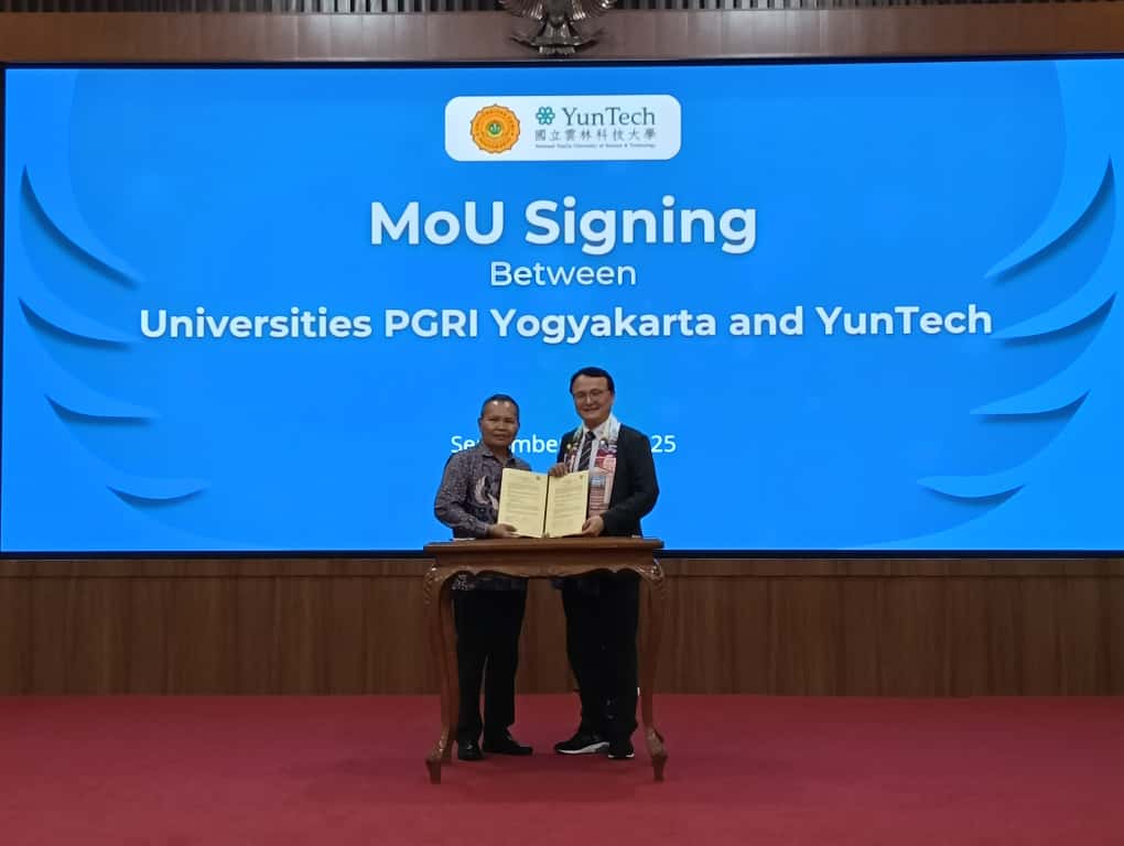 Universitas PGRI Yogyakarta (UPY) resmi menandatangani nota kesepahaman (MoU) dengan National Yunlin University of Science and Technology (Yuntech), Taiwan, pada Selasa, 30 September 2025. Penandatanganan berlangsung di Universitas PGRI Semarang (UPGRIS), yang menjadi tuan rumah pertemuan strategis seluruh jaringan Perguruan Tinggi PGRI di Indonesia.