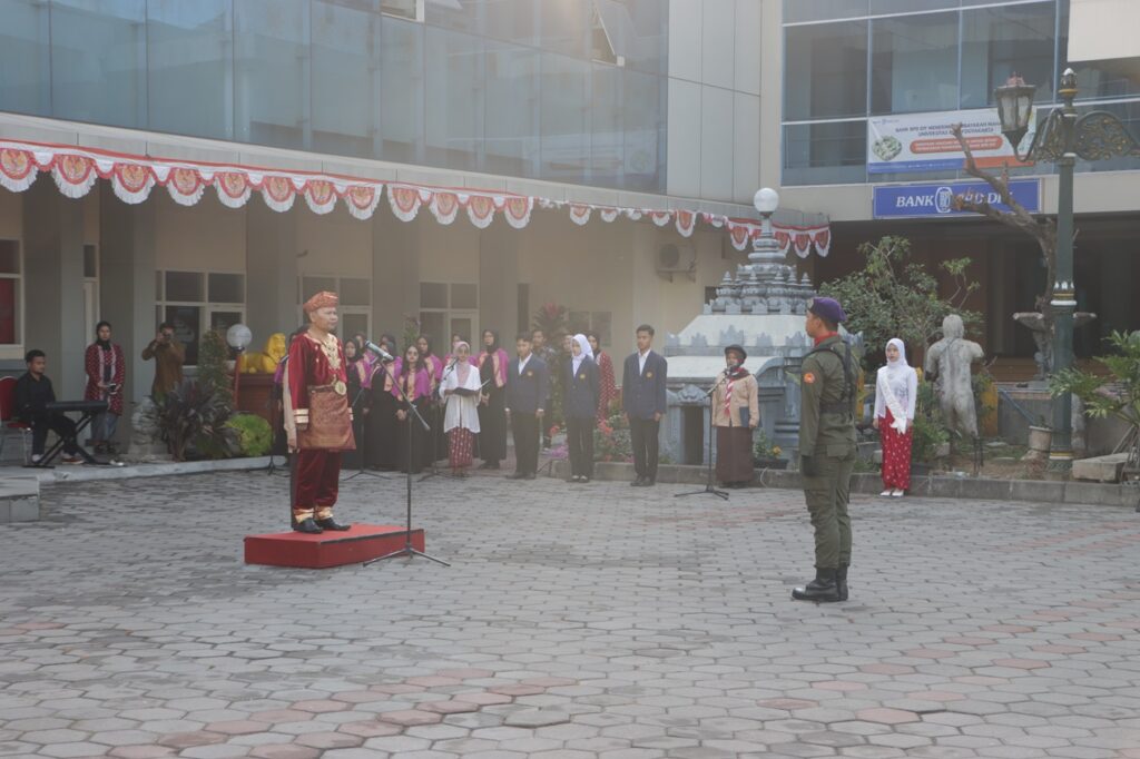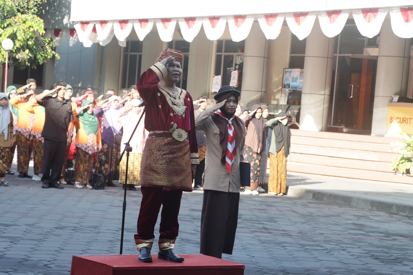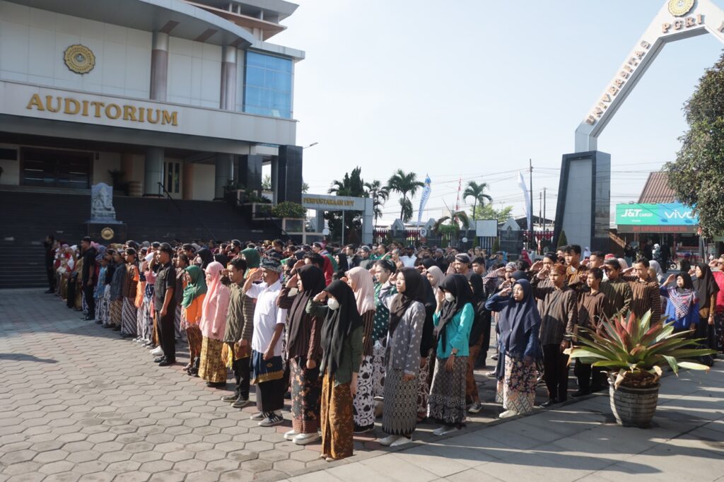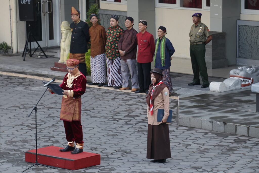 Universitas PGRI Yogyakarta (UPY) menggelar upacara peringatan Hari Ulang Tahun (HUT) Kemerdekaan ke-79 Republik Indonesia (RI) pada Sabtu, 17 Agustus 2024 pukul 07.30 WIB. Bertempat di Halaman Depan Auditorium Unit 1 Kampus UPY, upacara peringatan HUT ke-79 RI tersebut dihadiri oleh para pimpinan, dosen, tenaga kependidikan, serta guru dan siswa/siswi SMA PGRI dengan memakai pakaian adat daerah.